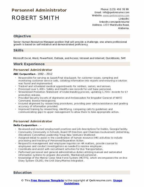Personnel Administrator Resume Samples Qwikresume
